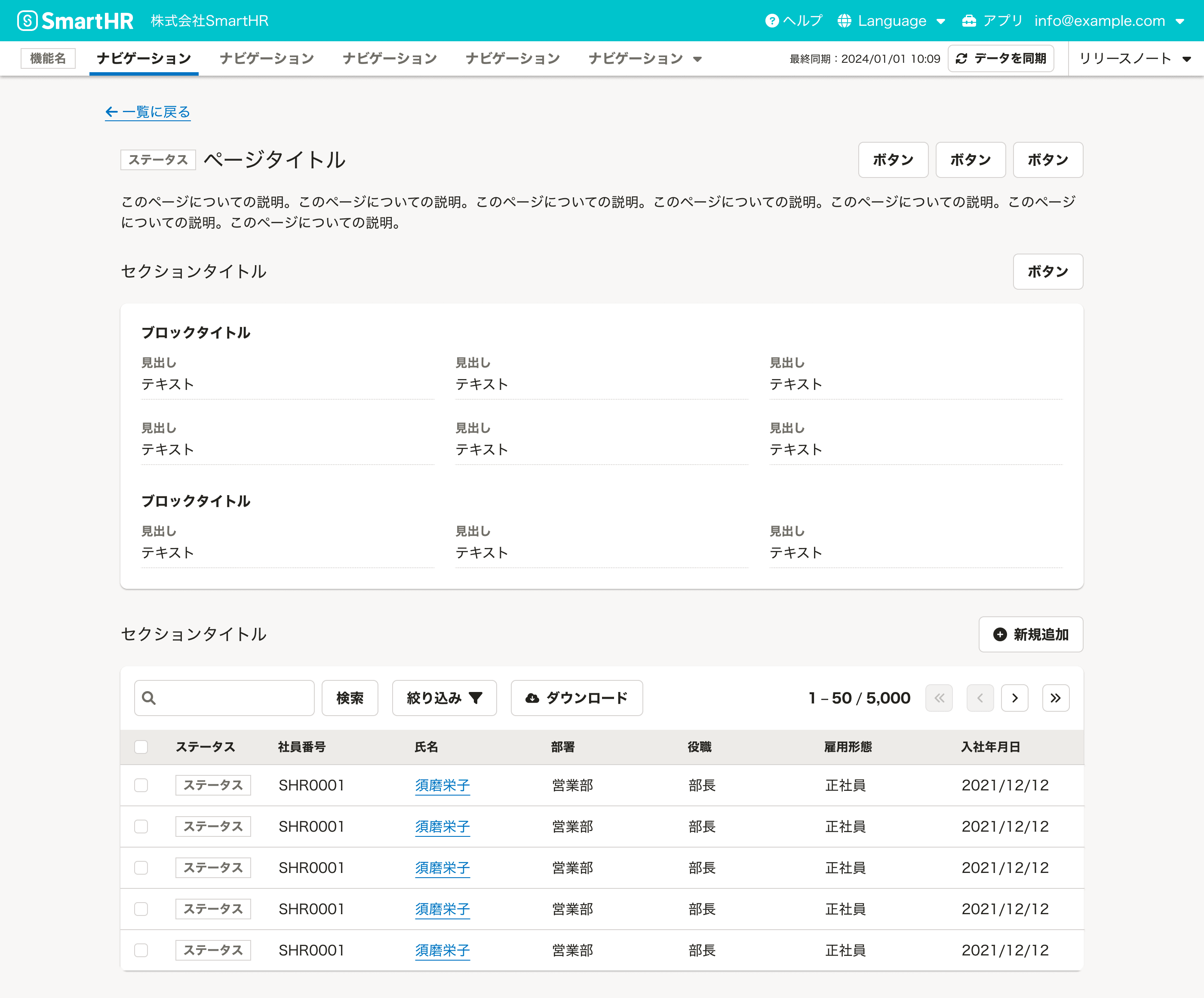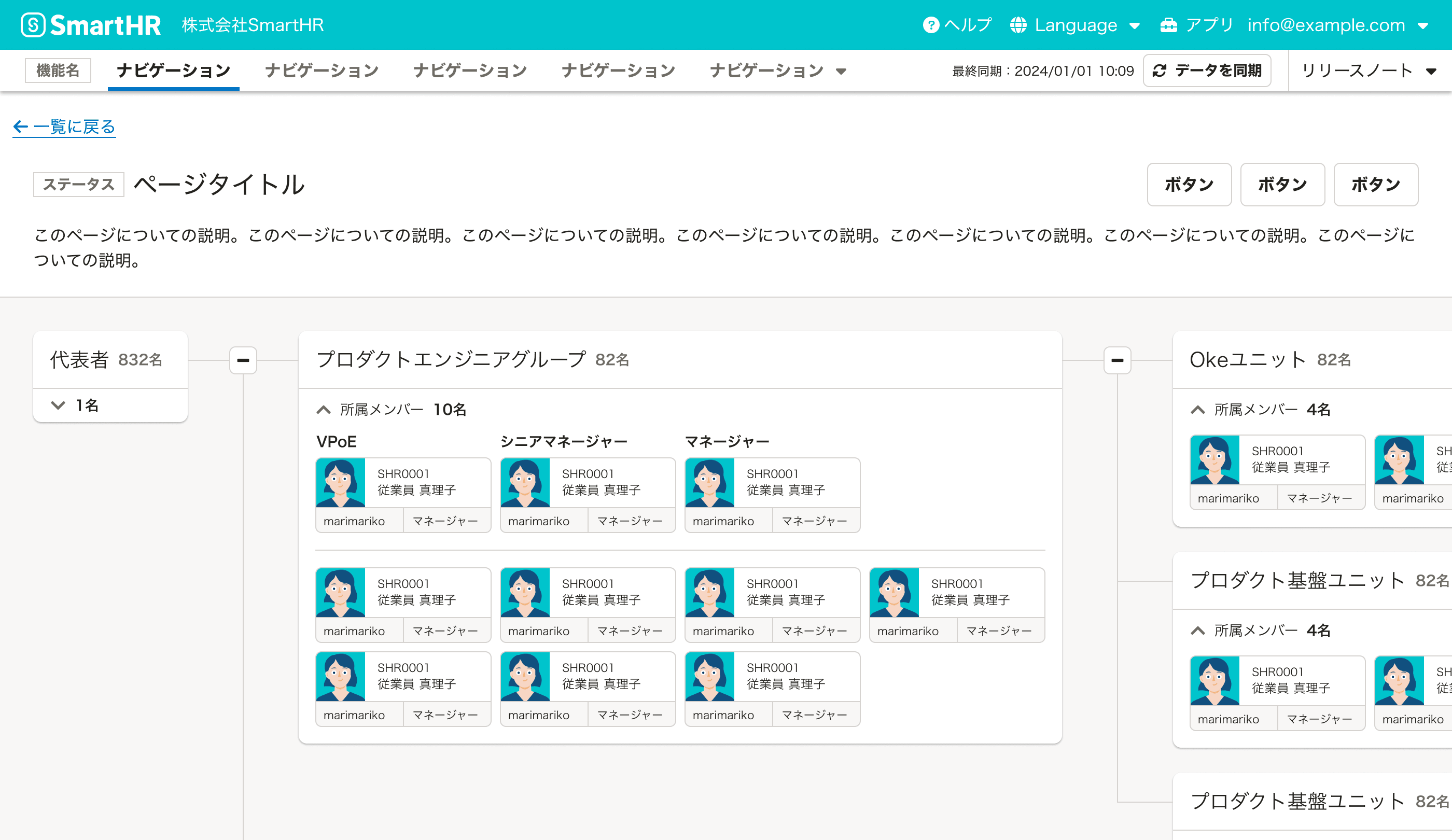 SmartHR全体で一貫性のあるページレイアウトを提供することで、ユーザーはレイアウトを都度学習することなく経験に基づいてUIを予測しながらアプリケーションを利用できます。