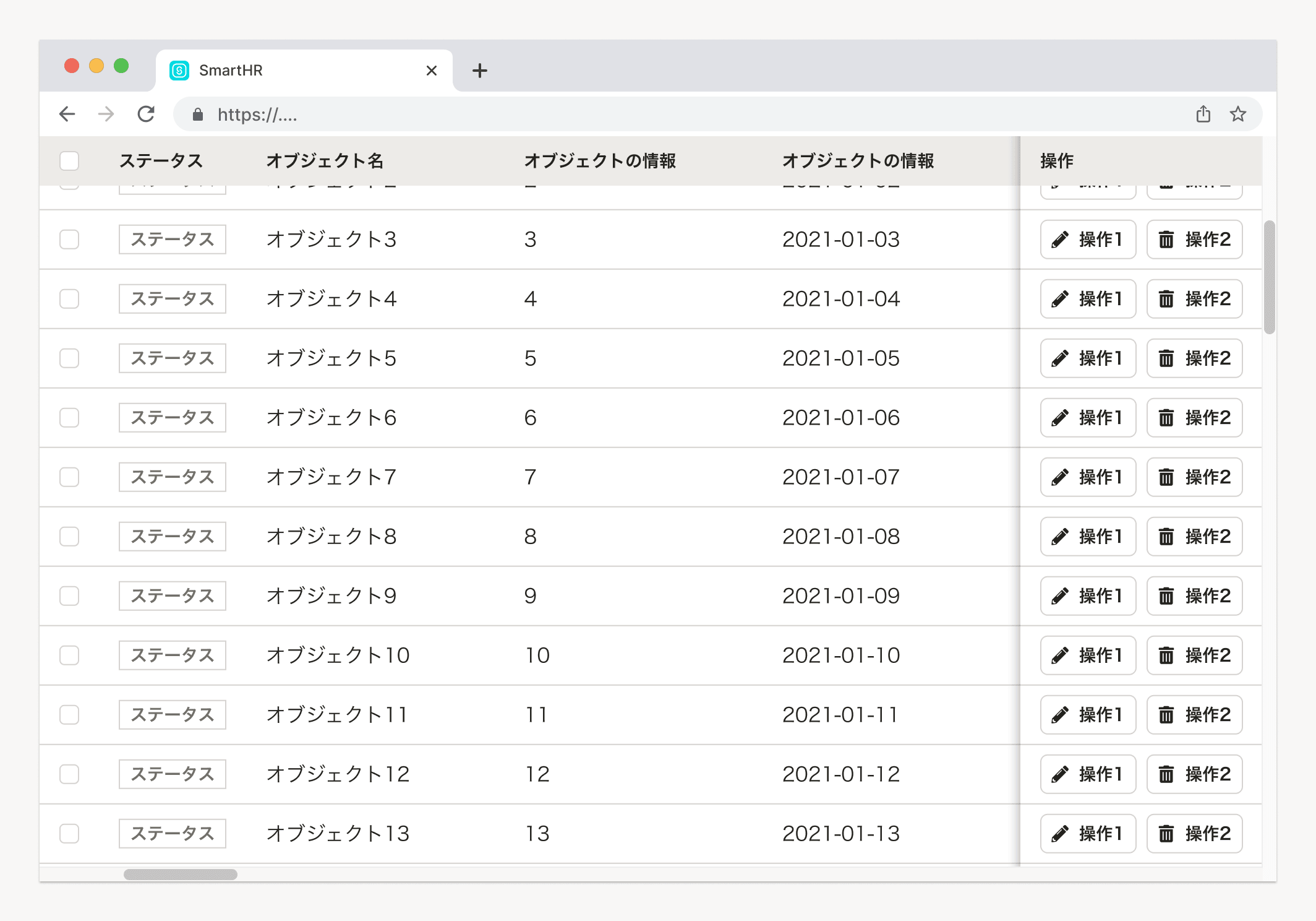 SmartHRでは、表形式で一覧表示するUIを「よくあるテーブル」と呼びます。