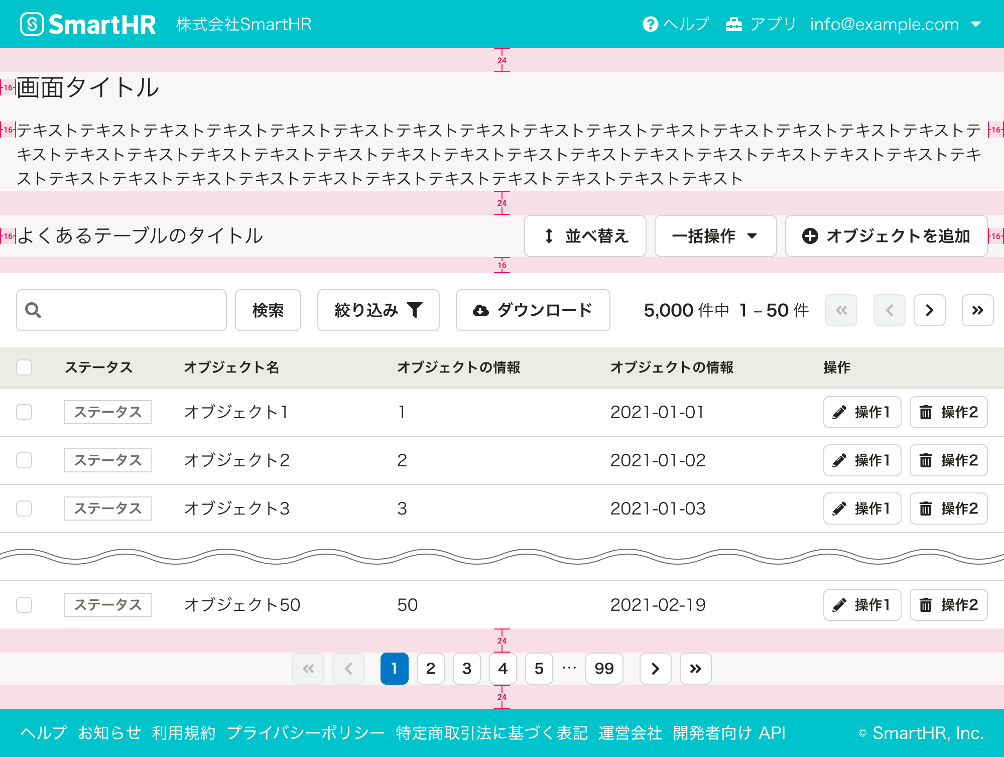 SmartHRに頻出する、表形式で一覧表示するUIのパターンをまとめています。
